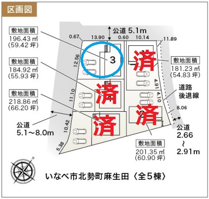 | 販売区画数 / 総区画数 | 1/5 | 接道 |