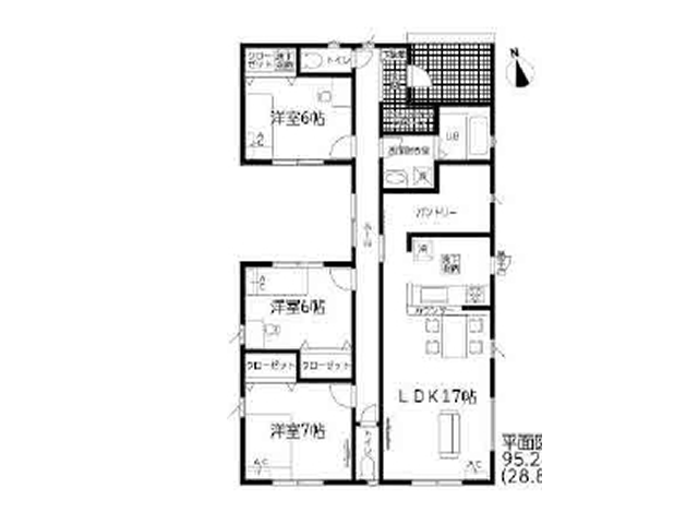 敷地80.5坪 中庭部分有りの平屋建て 小学校徒歩3分